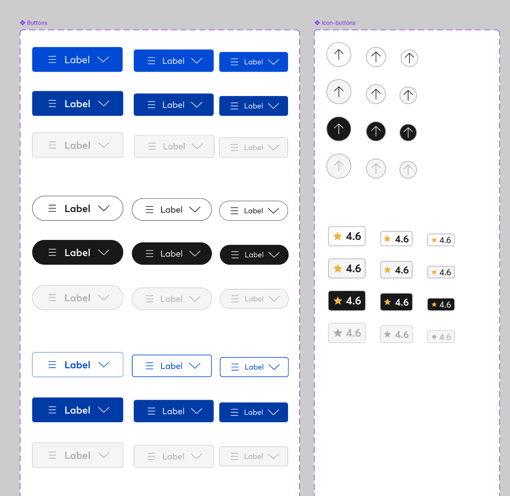 We also created component variants, including types, states, and sizes, to address diverse usage scenarios.