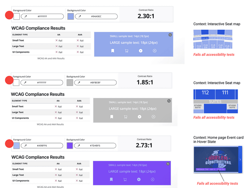 Color usages failed accessibility tests, causing readability issues.