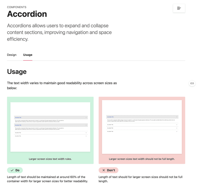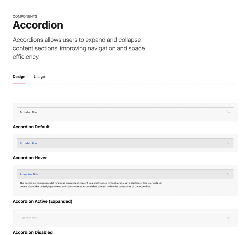 Each component page includes an overview, all variants, and detailed usage guidelines for designers to refer to efficiently.