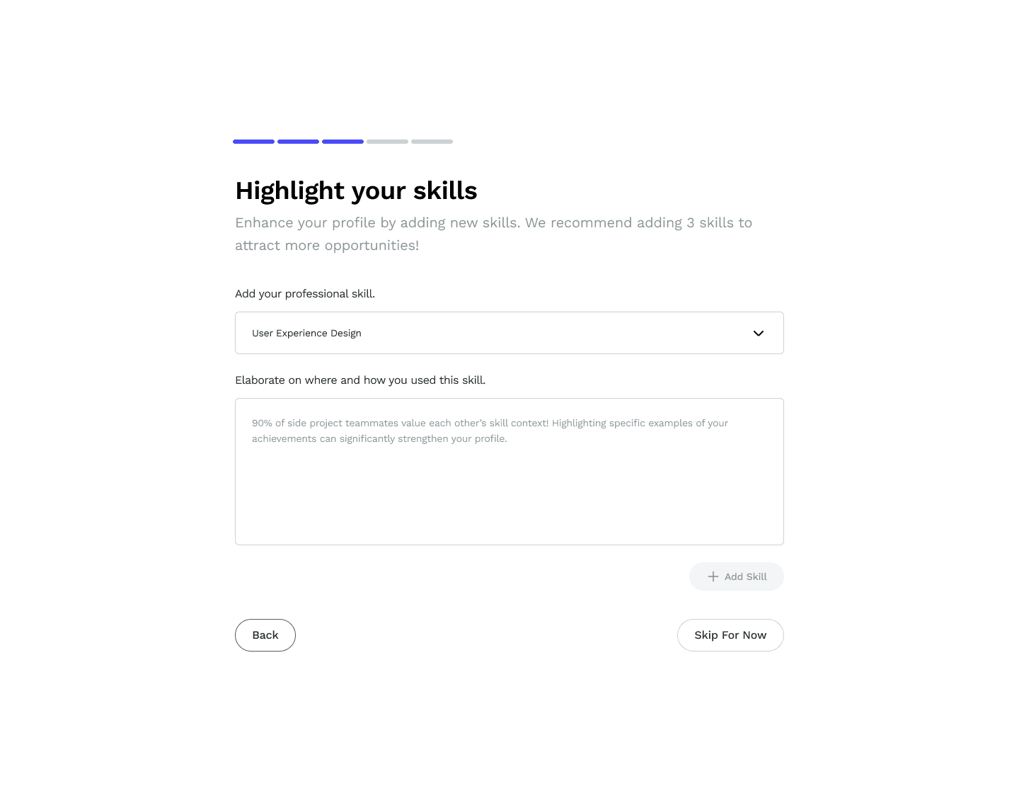 Prioritize skills and experience in users’ profile page
